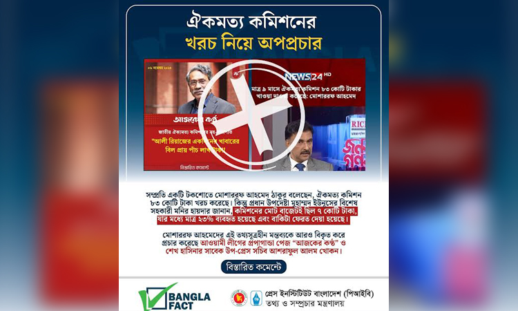 বাংলাফ্যাক্ট অনুসন্ধান টিম জানায়, ঐকমত্য কমিশনের খরচ নিয়ে মনগড়া তথ্য সামাজিক যোগাযোগ মাধ্যমে