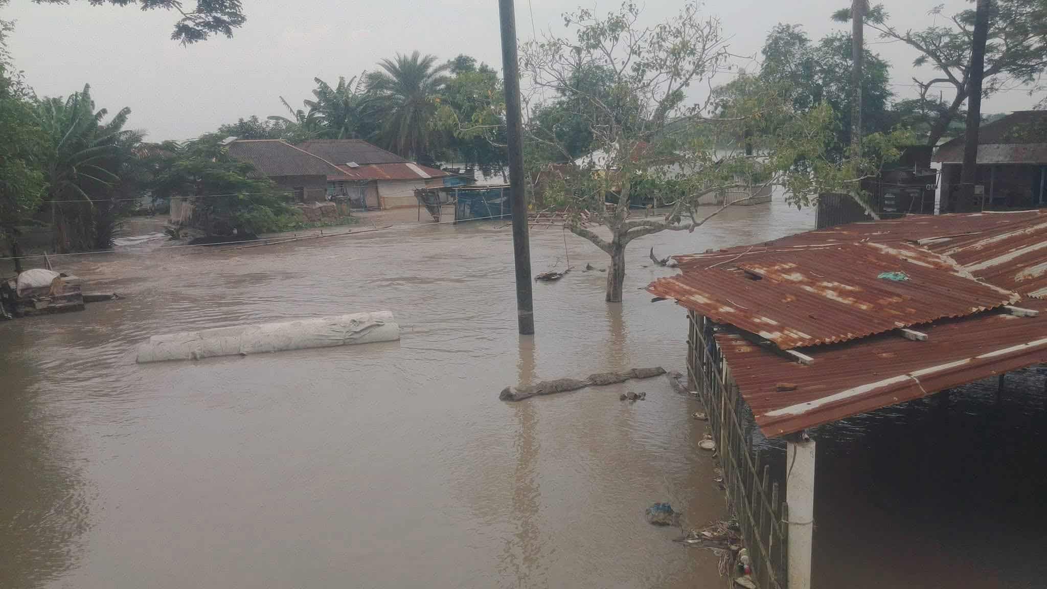 সূত্রে জানা যায়, গতকাল মঙ্গলবার রাত সাড়ে ১১টার ঢাকী নদীর জোয়ারের পানির প্রবল চাপে দাকোপের (৩০ নং পোল্ডারের অধীন) তিলডাঙ্গা ইউনিয়নের বটবুনিয়া হরিসভা মন্দির এলাকার আনুমানিক ২০০ ফুট ওয়াপদা বেড়িবাঁধ ভেঙে বিস্তীর্ণ এলাকা প্লাবিত হয়। এতে উত্তর কামিনীবাসিয়া, বটবুনিয়া, নিশানখালী ও আড়াখালী গ্রাম পানিতে তলিয়ে যায়।
