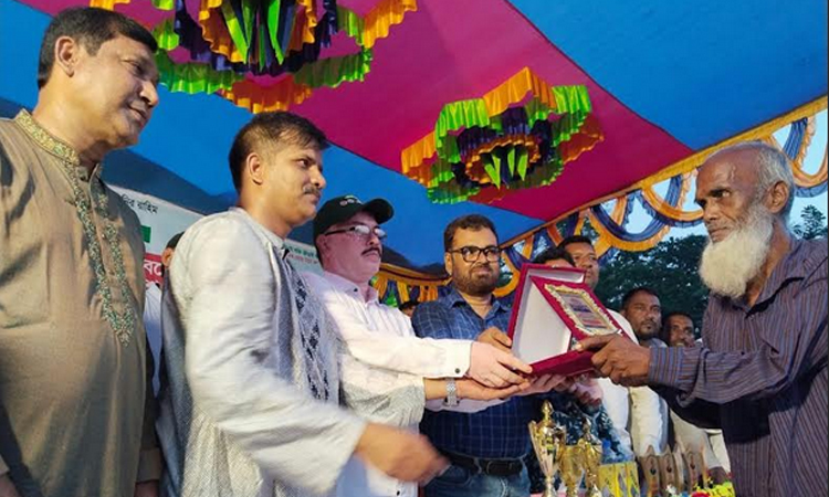 শুক্রবার জেলার ইন্দুরকানী (জিয়ানগর) উপজেলার ভবানীপুর খেলার মাঠে আরাফাত রহমান কোকো স্মৃতি ফুটবল টুর্নামেন্ট শেষে এক অনুষ্ঠানের মাধ্যমে তাদের হাতে সম্মাননা ক্রেস্ট তুলে দেওয়া হয়।