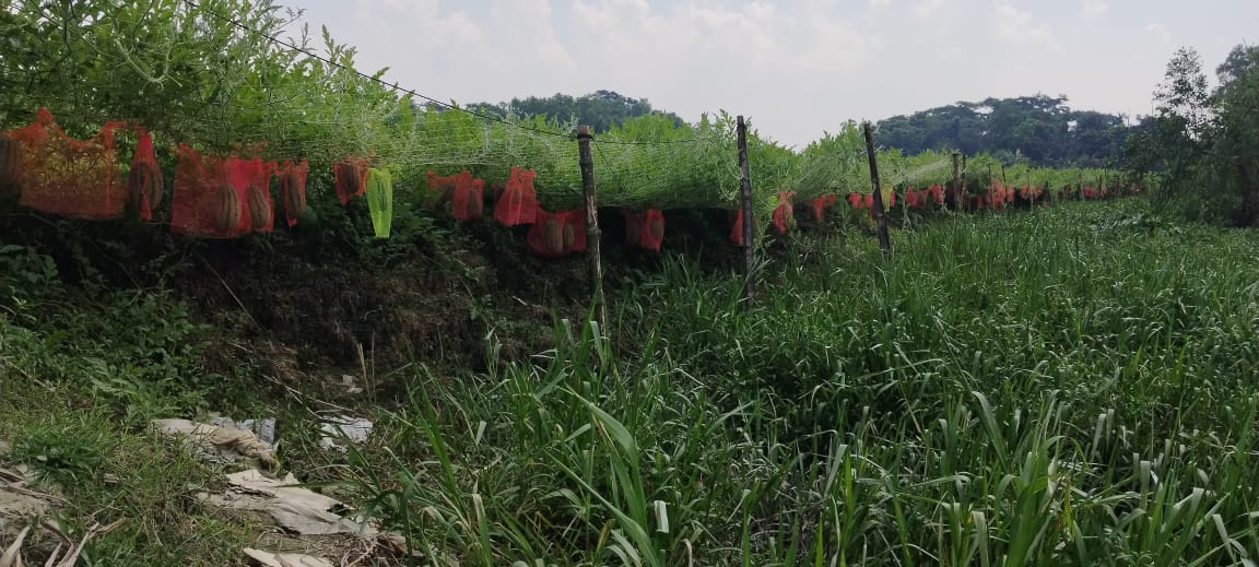 প্রচলিত জমির বদলে মাচায় তরমুজ চাষ করে স্থানীয় কৃষকদের মধ্যে নতুন আশার আলো জ্বালিয়েছেন তিনি। তাঁর মাচায় এখন ঝুলছে প্রায় ২৩ লাখ টাকার তরমুজ।