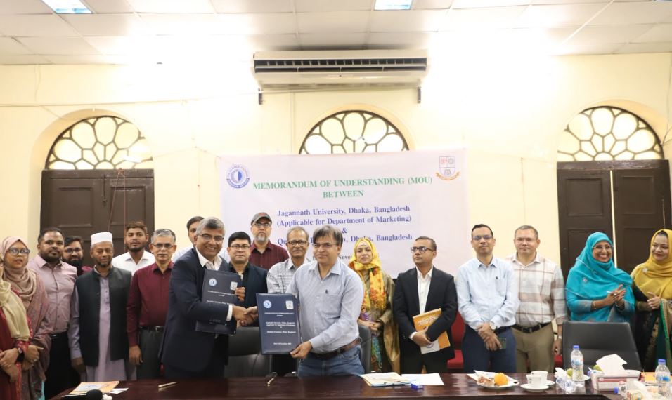 ঢাকা, ২৪ নভেম্বর, ২০২৫ (বাসস) : মার্কেটিং বিভাগের শিক্ষার্থীদের মানসিক সুস্থতা বৃদ্ধির লক্ষ্যে জগন্নাথ বিশ্ববিদ্যালয় (জবি) ও কোয়ান্টাম ফাউন্ডেশনের মধ্যে সমাঝোতা স্মারক স্বাক্ষর হয়েছে।