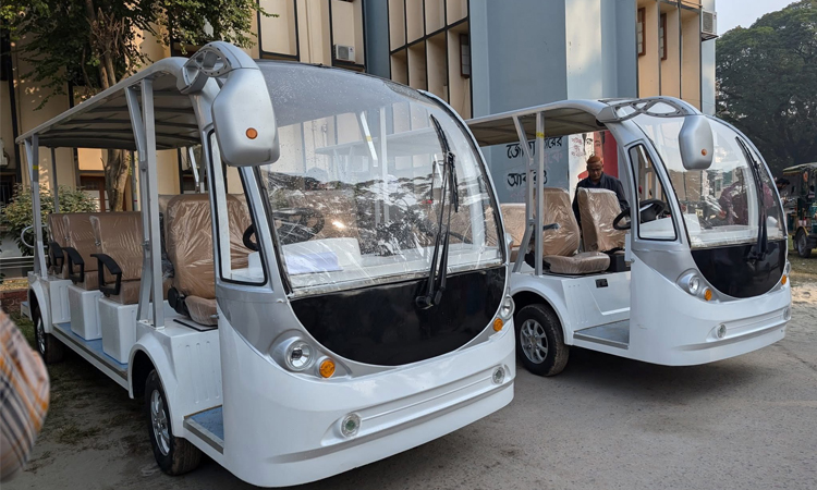 রাজশাহী, ২৬ নভেম্বর, ২০২৫ (বাসস) : রাজশাহী বিশ্ববিদ্যালয় (রাবি) ক্যাম্পাসে চলাচলের জন্য ই-কার্ট চালু হয়েছে। আজ বুধবার সকালে প্রশাসন ভবন-১ চত্বরে ই-কার্ট সার্ভিসের উদ্বোধন করেন রাবি উপাচার্য প্রফেসর সালেহ্ হাসান নকীব।