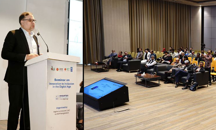 আজ মঙ্গলবার রাজধানীর আগারগাঁওয়ের বিডা অডিটোরিয়ামে এসপায়ার টু ইনোভেট (এটুআই) প্রোগ্রাম এবং জাতিসংঘ উন্নয়ন কর্মসূচি (ইউএনডিপি) বাংলাদেশ আয়োজিত ‘ইনোভেশন টু ইনক্লুশন ইন দ্য ডিজিটাল এইজ’ শীর্ষক সেমিনারে প্রধান অতিথির বক্তৃতায় তিনি এসব কথা বলেন।