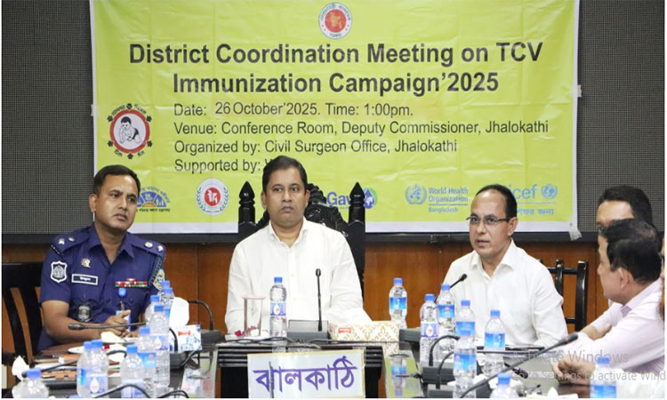 ঝালকাঠি, ২৭ অক্টোবর, ২০২৫ (বাসস) : ঝালকাঠিতে টিসিভি (টাইফয়েড কনজুগেট ভ্যাকসিন) টিকাদান কর্মসূচি নিয়ে জেলা পর্যায়ে সমন্বয় সভা অনুষ্ঠিত হয়েছে।