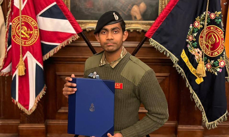 ঢাকা, ১৩ ডিসেম্বর, ২০২৫ (বাসস): বাংলাদেশ সেনাবাহিনীর অফিসার ক্যাডেট সাকিব আহসান রিফাত যুক্তরাজ্যের রয়্যাল মিলিটারি একাডেমি স্যান্ডহার্স্ট (আরএমএএস) থেকে প্রশিক্ষণ সফলভাবে সম্পন্ন করে দুটি মর্যাদাপূর্ণ আন্তর্জাতিক সম্মান ‘ইন্টারন্যাশনাল সোর্ড অব অনার’ এবং ‘ইন্টারন্যাশনাল অ্যাওয়ার্ড’ অর্জন করেছেন।