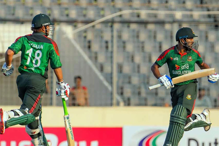 মিরপুর শেরে বাংলা জাতীয় ক্রিকেট স্টেডিয়ামে টস জিতে প্রথমে ব্যাটিং করতে নামে স্বাগতিক বাংলাদেশ। দলকে ২৮ বলে ২২ রানের শুরু এনে দিয়ে বিচ্ছিন্ন হন সাইফ হাসান ও সৌম্য সরকার। ১টি ছক্কায় ৬ রান করেন সাইফ।