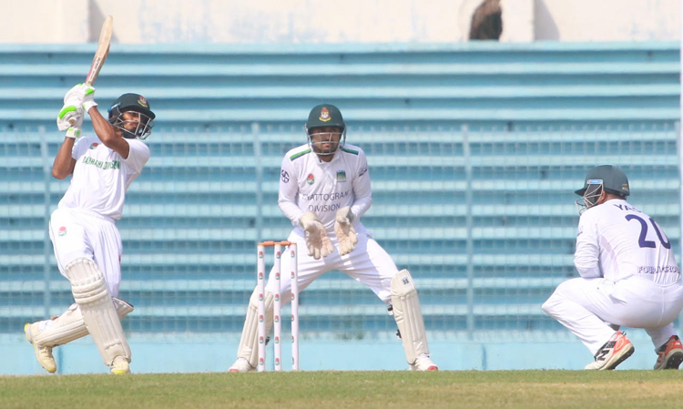প্রথম ইনিংসে ৭৩ রানের সূচনা করে সিলেট বিভাগ। অধিনায়ক জাকির হাসানকে ৩৮ রানে আউট করেন স্পিনার রাকিবুল। আরেক ওপেনার সৈকত আলি ৫৩ রানে আহত অবসর নেন।