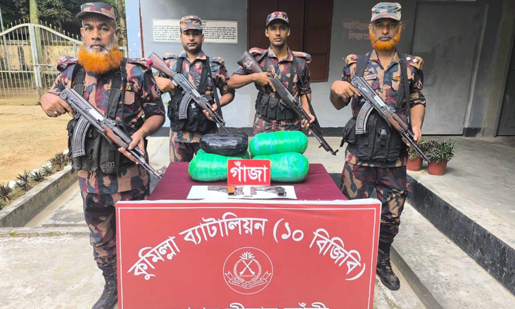 CUMILLA, Nov 3, 2025 (BSS) - Border Guard Bangladesh (BGB) in a drive recovered two foreign made pistols, two magazines, two bullets and 12 kg of marijuana from Dhanpur Math area in Sadar Dakshin upazila early this morning.