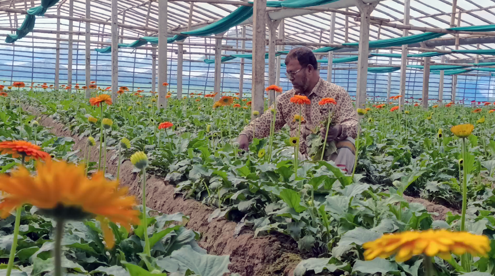 Another Panisara farmer, Saiful Islam, set up a large shed spanning 33 decimal of land to cultivate gerbera flowers, investing Taka 11 lakh in its construction. His plants began blooming three months after planting, and he is currently harvesting 1,000 to 1,500 flowers daily, selling each for Taka 10.