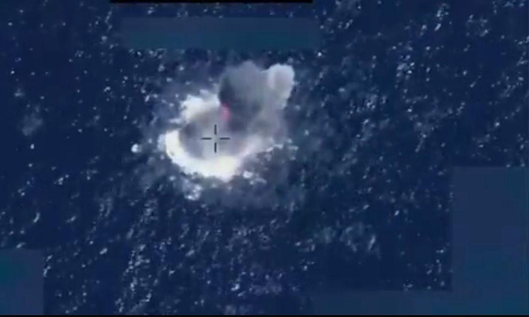 The Pentagon chief's post included video of the strikes, the first of which targeted two stationary boats that appeared to be moored together, while the others hit vessels that were speeding across open water.