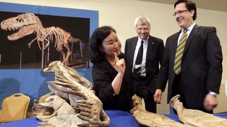 Asian cousin of the fearsome Tyrannosaurus rex, was seized by French