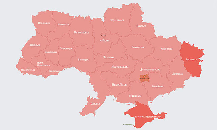 KYIV, Ukraine, March 24, 2026 (BSS/AFP) - Air raid alerts were issued early Tuesday in all of Ukraine except for the Odesa region as Russia launched fresh attacks, according to regional authorities.