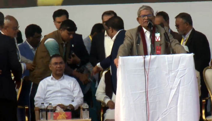 Then, a motorcade escorted Tarique Rahman's bus to the venue as millions of people standing on the both sides of airport road bound to 300 feet welcomed him with chanting slogans.