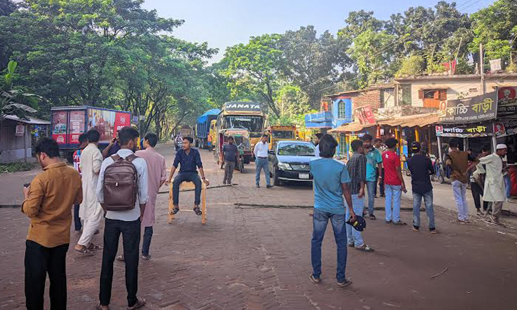 The students temporarily blocked the highway near the university's main gate, drawing attention to the issue.