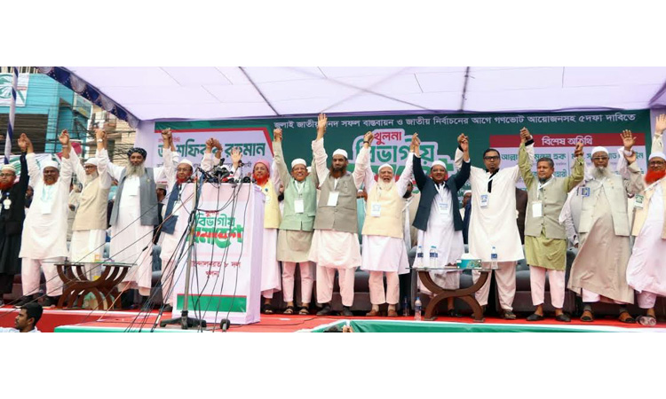 Bangladesh Khelafat Majlis Ameer Allama Mamunul Haque, Senior Naeb-e-Ameer Maulana Sakhawat Hossain, Nizam-e-Islam Party Secretary General Mufti Musa bin Izhar, Bangladesh Khelafat Andolon Secretary General Maulana Yusuf Sadeq Hokkani, Jagpa Vice-President Engineer Rashed Pradhan, BDP Chairman Advocate Anwarul Islam Chan, and senior leaders of Jamaat-e-Islami and Islami Andolon addressed the rally as special guests.