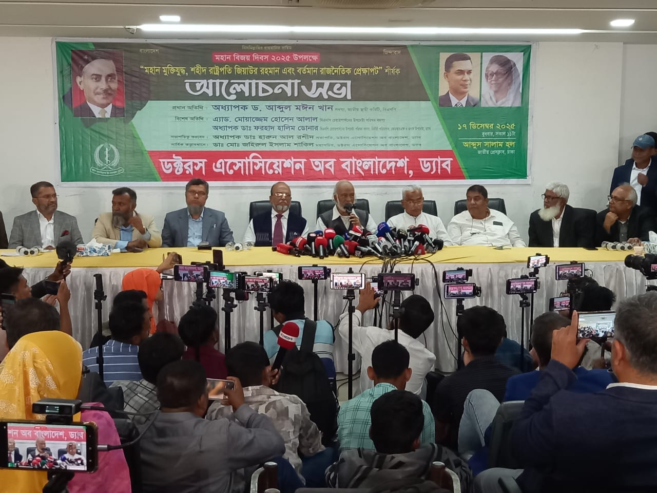 The discussion titled "The Great Liberation War, Shaheed President Ziaur Rahman, and the Current Political Context," was organized by the Doctors' Association of Bangladesh (DAB).