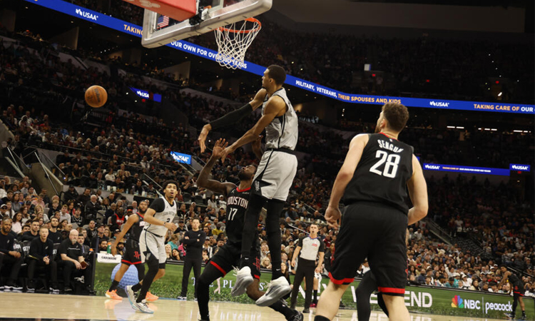 French superstar Wembanyama was one of six Spurs players to reach double figures as San Antonio bombarded Western Conference rivals Houston with a stream of 21 three-pointers.